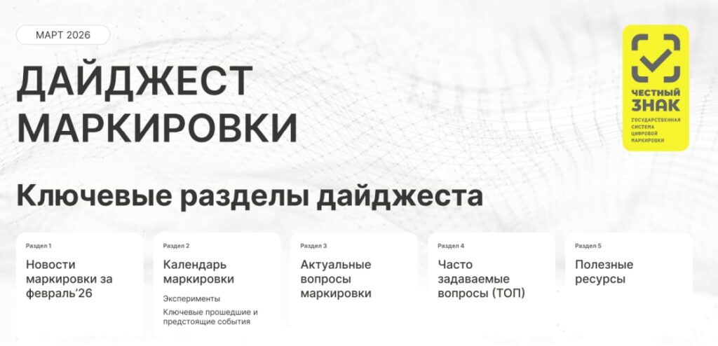 Дайджест содержит новости маркировки, календарь предстоящих событий на период март-август 2026 года и подборку полезных информационных и методических ресурсов.
