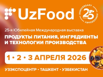 С 1 по 3 апреля 2026 года в г.Ташкент, Республика Узбекистан, состоится 25-я Международная выставка «Продукты питания, ингредиенты и технологии производства — UzFood 2026»